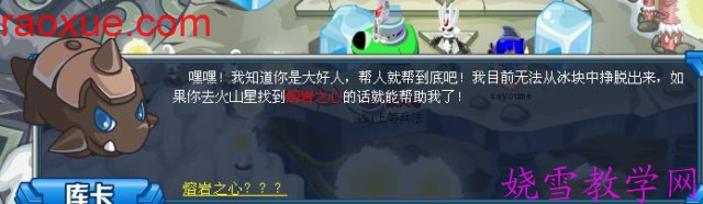 库卡说你一定要去火山星山洞,山洞里面的精灵都知道熔岩之心,带回10个熔岩之心就可以救出库克了。