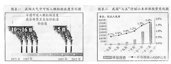 (2)环保资金的投入不断增加;环保资金占GDP比重不断增加。(2分。如写出“国家逐渐重视环境保护”等给1分。)